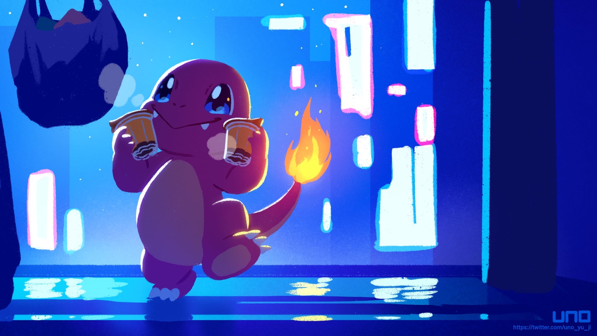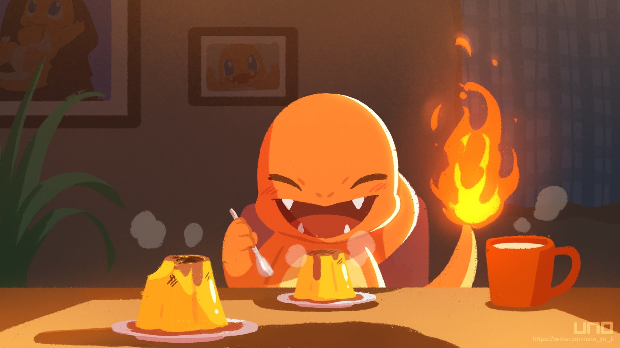 回家後用一杯熱牛奶配上小火龍的笑容最幸福了