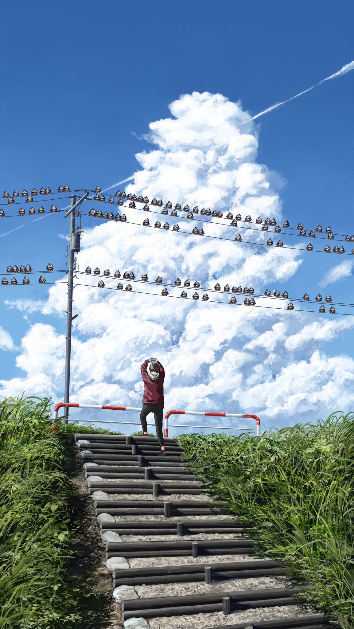 電線杆上滿滿的麻雀(X