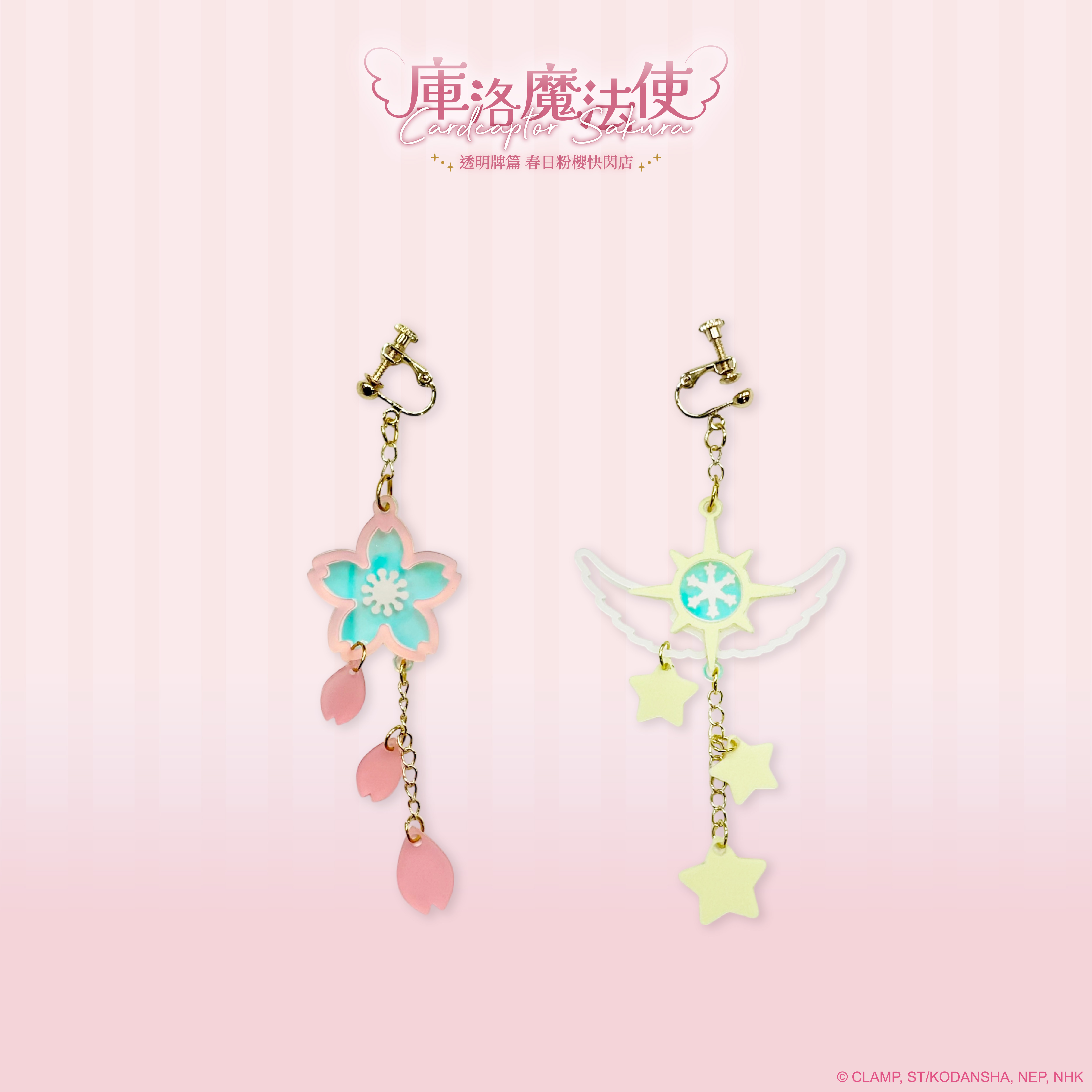 庫洛魔法使-耳環-櫻花&夢之杖(耳夾款)