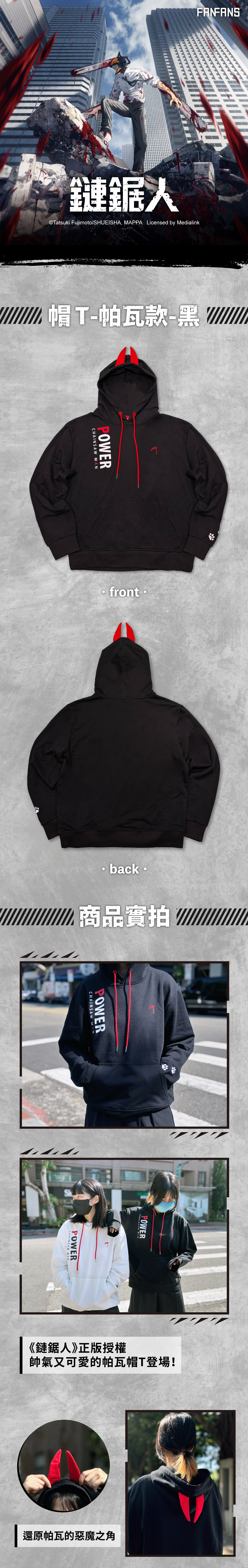 鏈鋸人-帽 T-帕瓦款-黑