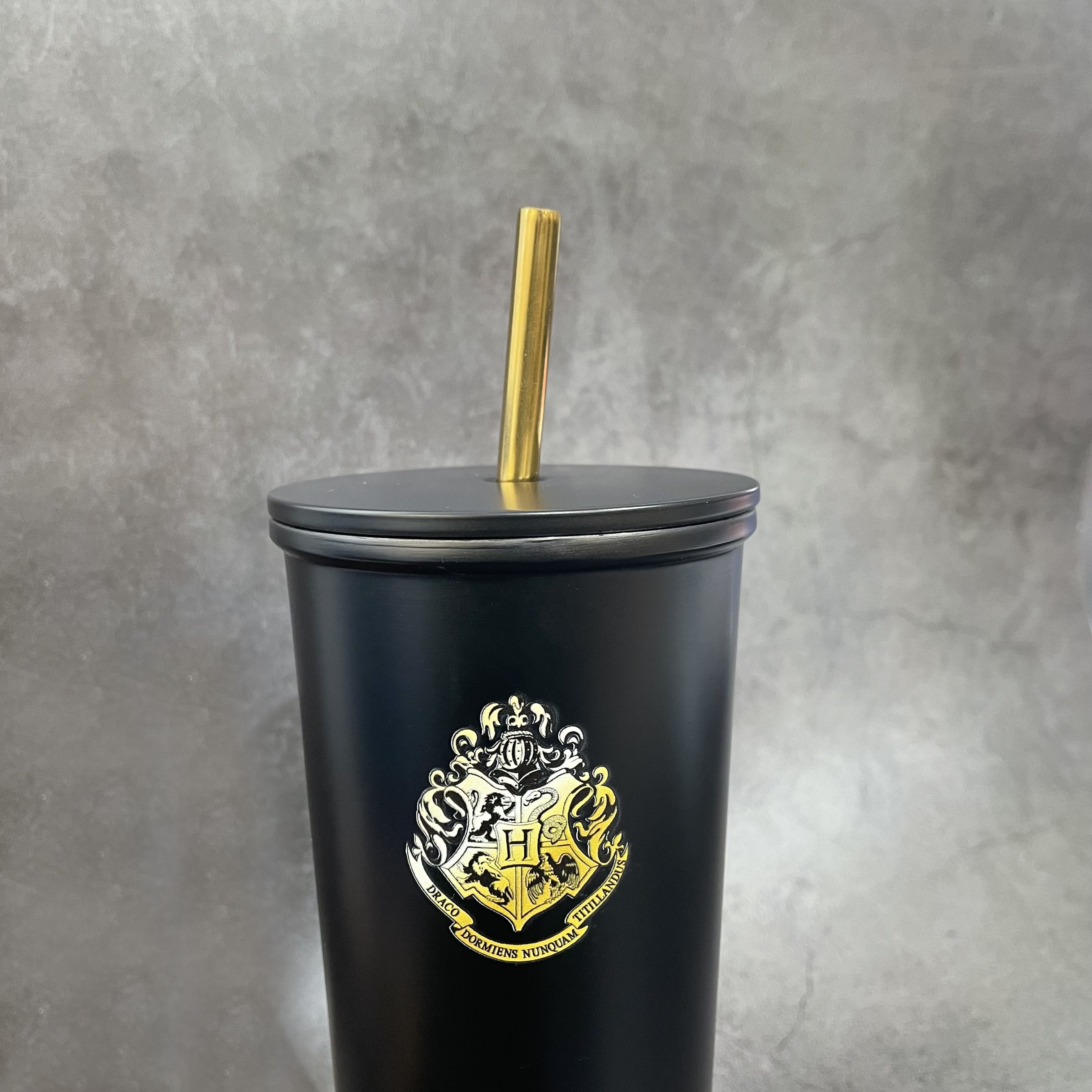 必入手的哈利波特吸管杯!質感滿分的霧面黑金屬杯身上,印有經典的霍格華茲校徽,再加上古銅金色的金屬吸管,750ml大容量也能滿足日常需求