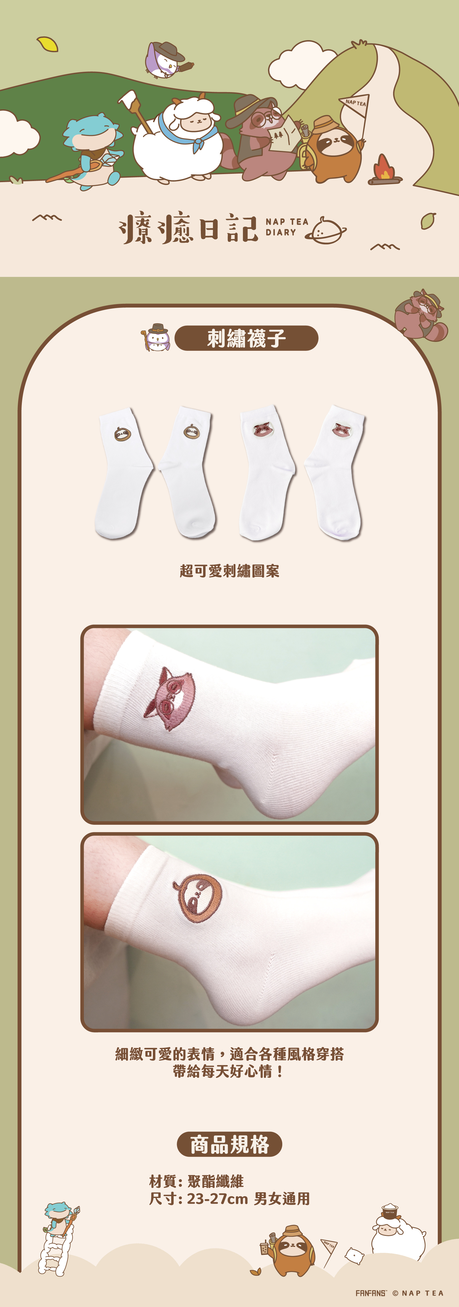 再睡5分鐘-刺繡襪子-布朗